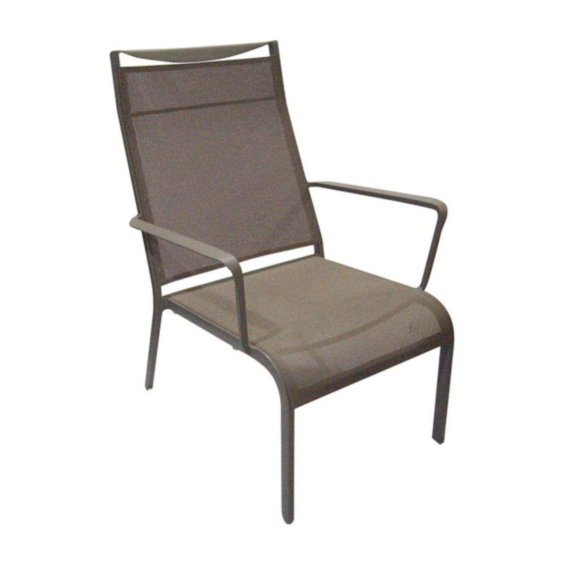 Armchair Aloha Lounge in mocha colour with perforated cloth, made of aluminium