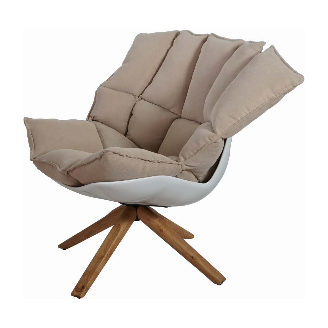 Armchair Berry rotating in white colour and beige cushion, made of wood