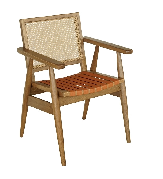 Armchair Melia oak wood frame, with belts on the seat and viennese straw on the back