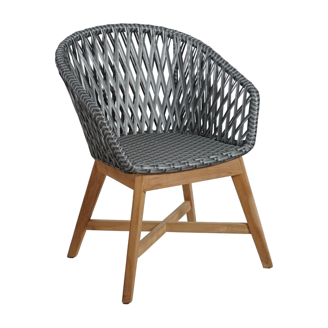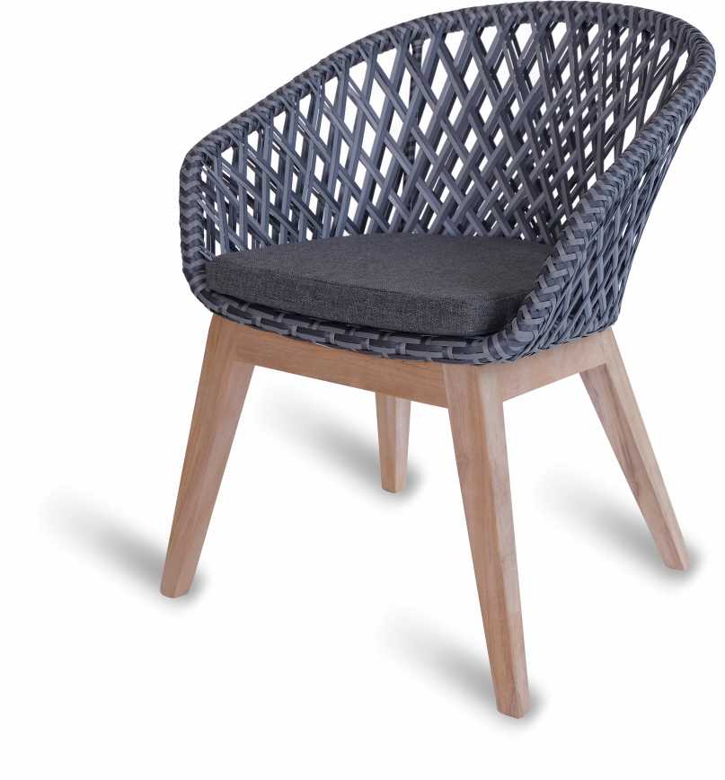 Armchair Norodom, teak wood frame, knitted with PVC 7mm cord, made of aluminium