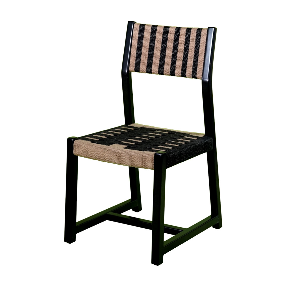 Chair Linea R, solid beech wood frame, with Giuta rope and 4mm black cord on the seat and back